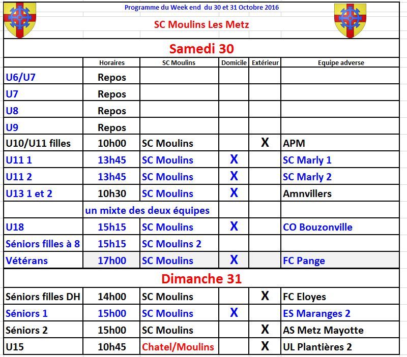 Programme du Week - End du 29 et 30 Ocotbre 2016