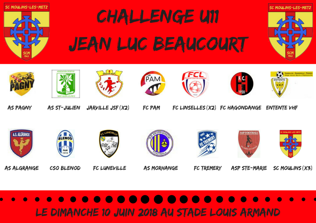 Voici le programme du challenge Jean-Luc Beaucourt du samedi 09 juin 2018 au stade Louis Armand !